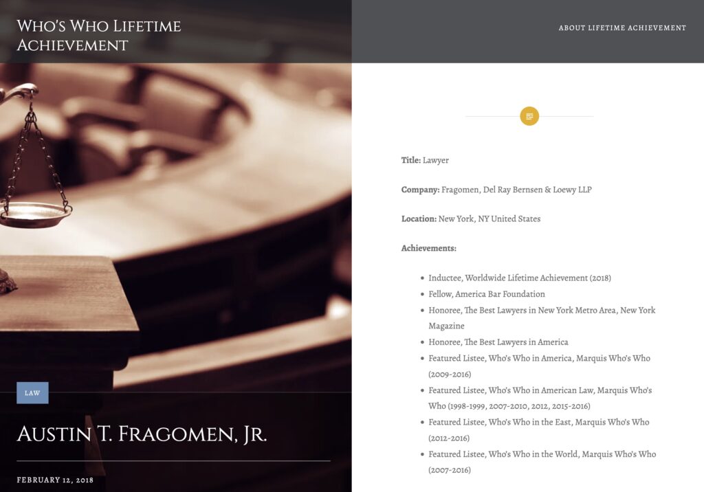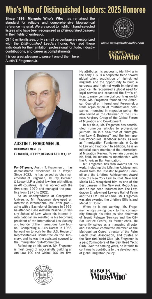 Mr. Fragomen’s many honors and accomplishments are showcased on his Marquis Lifetime Achievement site.