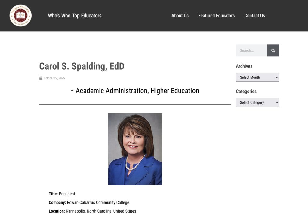 In recognition of her career as a trailblazer in academic leadership, Dr. Spalding was named a Marquis Who’s Who Top Educator