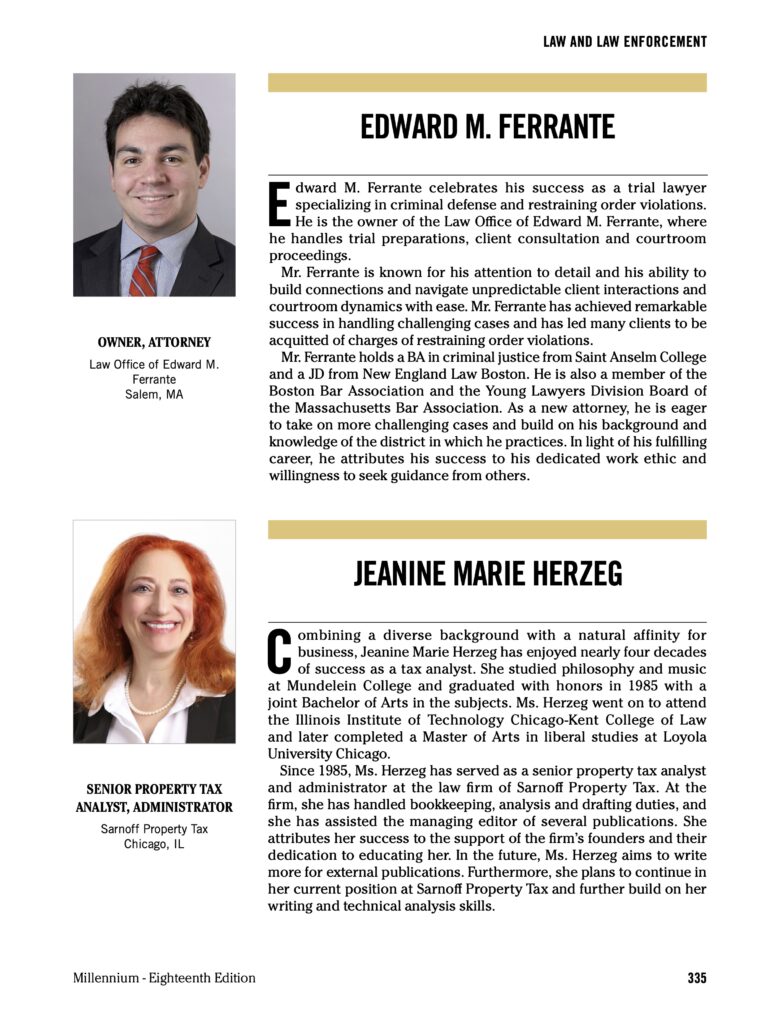 Ms. Herzeg’s career background and achievements were the topic of a feature in the 18th Edition of Marquis Millennium Magazine.